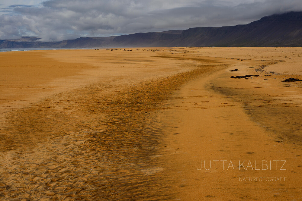 Wer träumt bei diesen hochsommerlichen Temperaturen nicht von einem wunderschönen, einsamen Sandstrand? Vor einem Jahr führte uns unsere Reise durch die isländischen Westfjorde zum Rauðisandur. Der „Rote Sand“ ist eine endlos wirkende, 10 km lange Muschelsandbank gelegen im nordwestlichen Außenposten der Insel.
