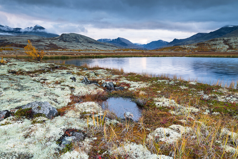 Es ist der Abgesang des kurzen Sommers, der das Fjäll in bunte Farben kleidet, der Wechsel von Sonne und Regen bringt sie zum Strahlen - ein kurzes Aufbegehren, bevor Schnee und Eis die Berge für viele Monate in ein eisiges Weiß hüllen werden, bevor Stille einkehrt, die der erbarmungslose Winter mit sich bringt.