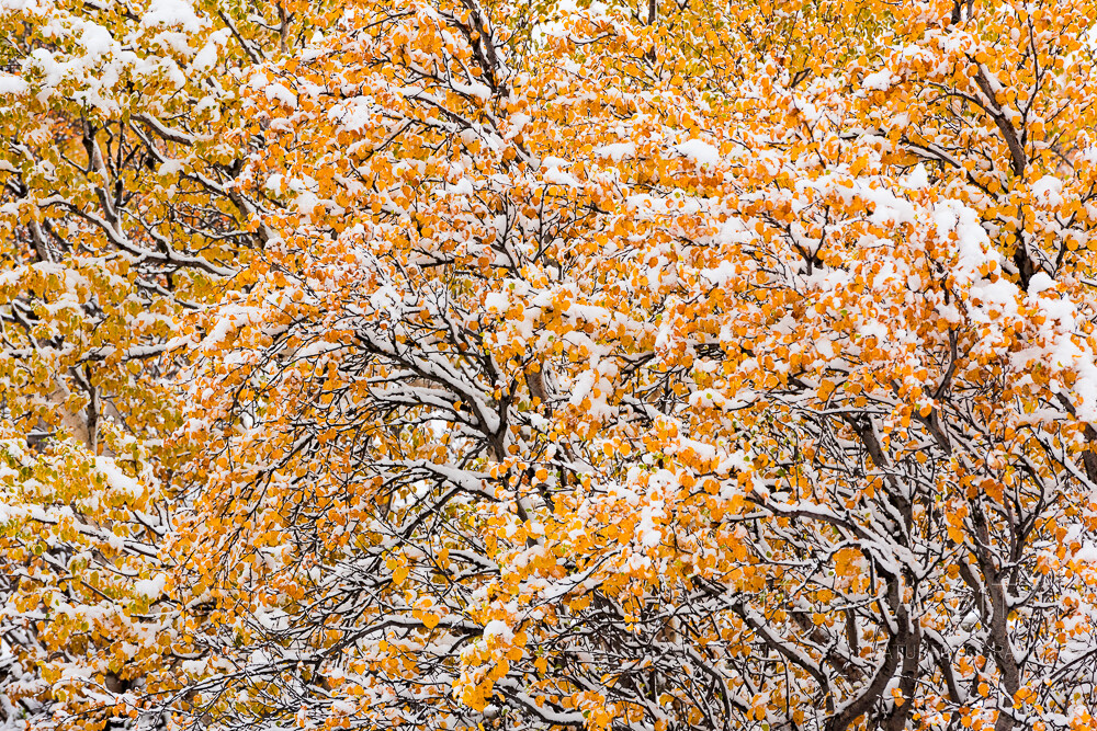 Und dann, über Nacht ist er da, der erste Schnee auf gelben Birken...