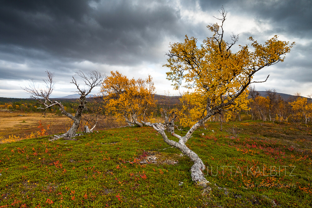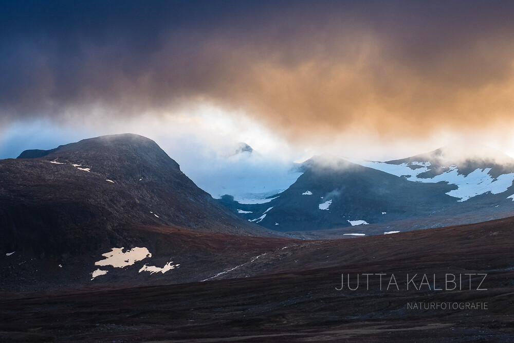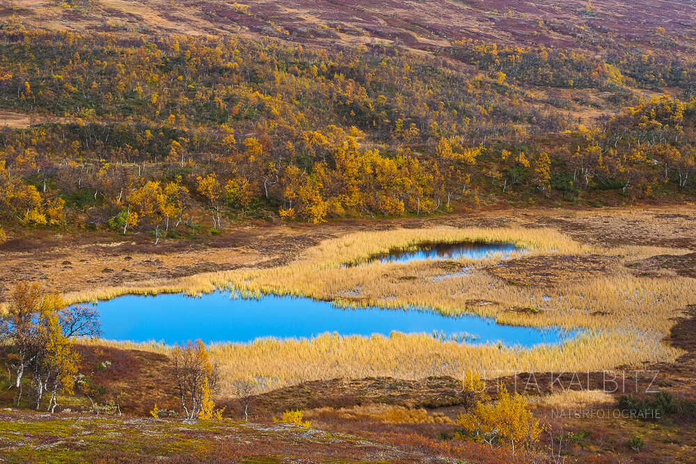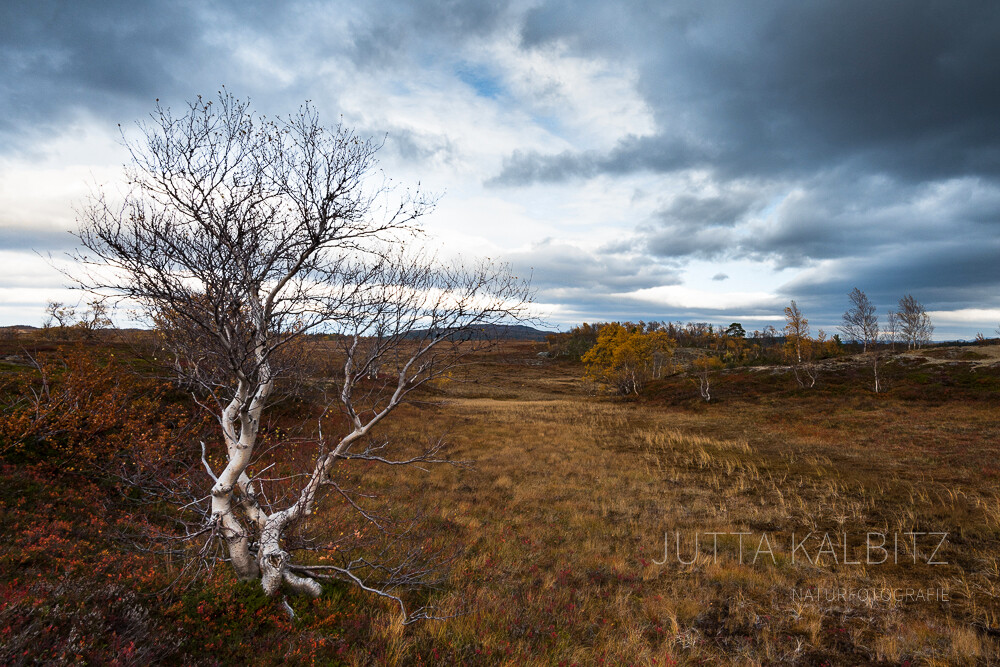 Unbarmherzig fegt der Wind über das Fjäll. Schon lange ist er unterwegs, hat die Wärme der letzten Herbsttage aufgesammelt und sich daran gestärkt. Er bringt die Moor-Seen, die uns wie blaue Augen anschauen zum Zittern.
