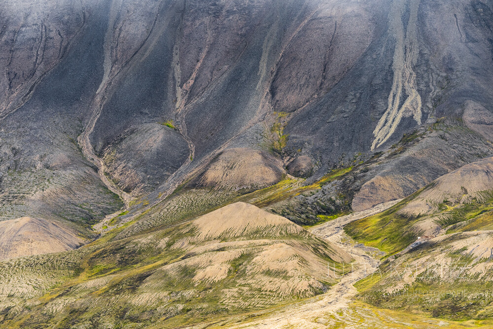 Kleine Rinnsale graben ihre Spuren ins Gestein und hinterlassen Strukturen und Farben, die jedem Maler zur Ehre gereichen würden.