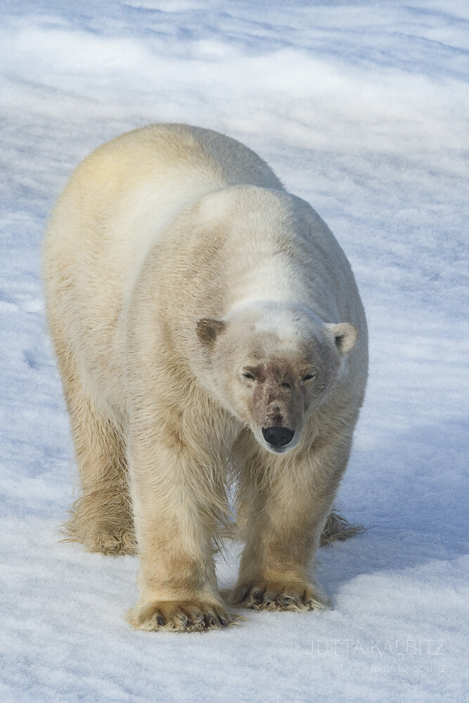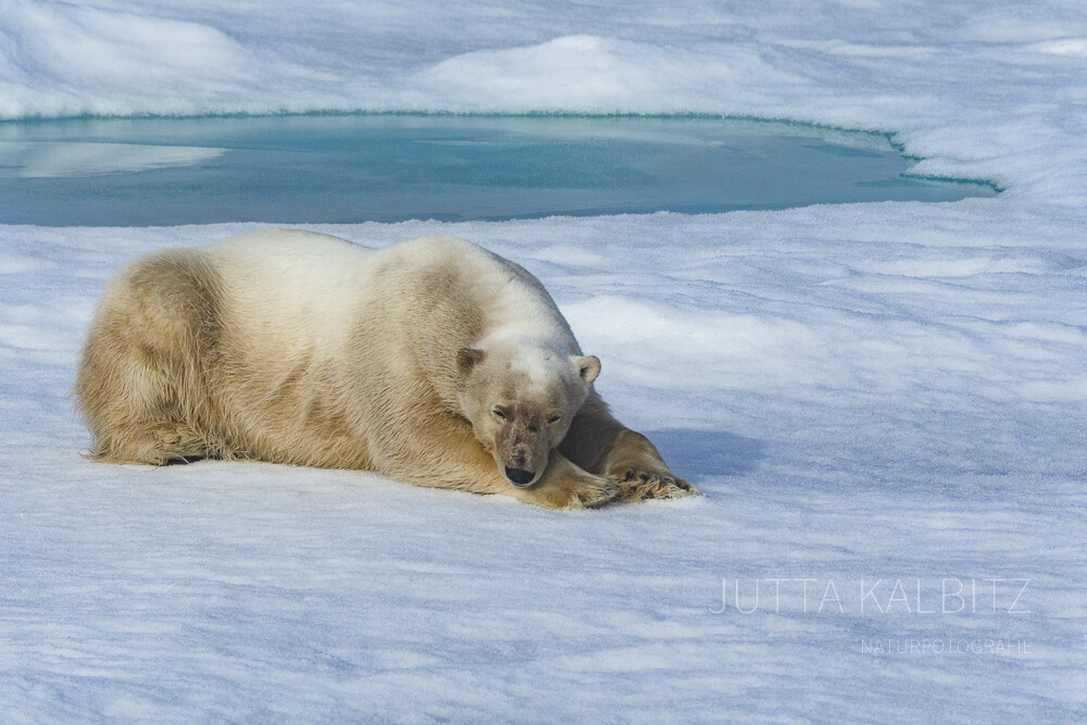 Wohlgenährt und gemächlich trottet er über das Packeis, um sich immer mal wieder eine Auszeit zu gönnen.