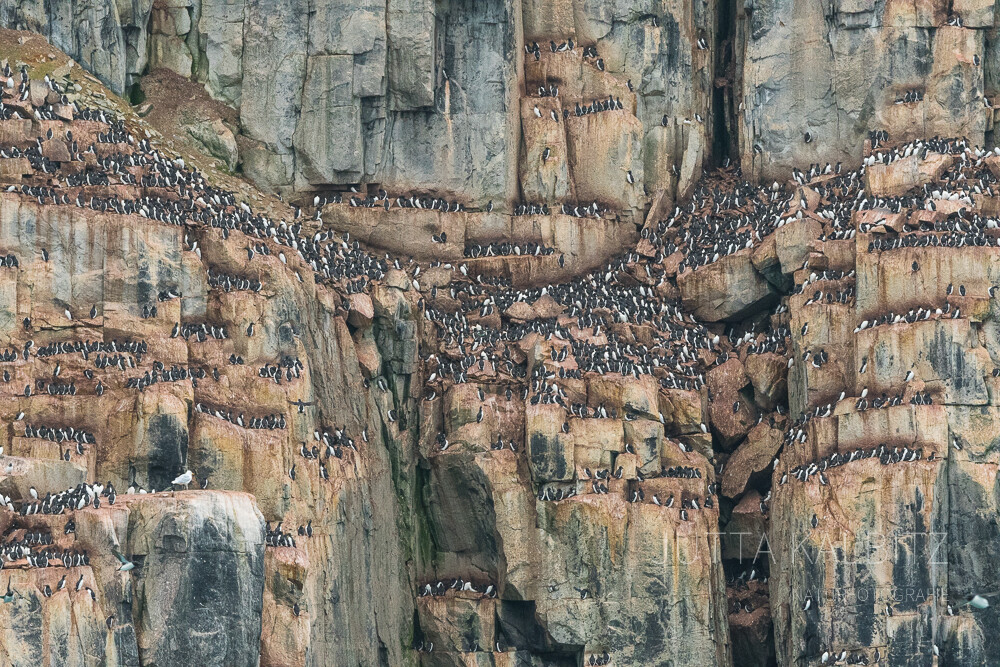 Tausende von Dickschnabellummen verbringen hier den Sommer, um zu brüten – auf engstem Raum und schmalen, schwindelerregenden Felsvorsprüngen.