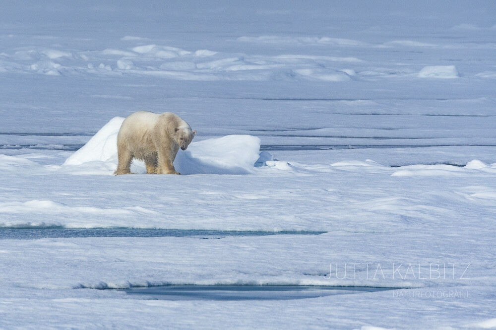 Und tatsächlich, einige Zeit später ist der lang ersehnte Moment gekommen: Im unendlich scheinenden Weiß sichten wir den König der Arktis.
