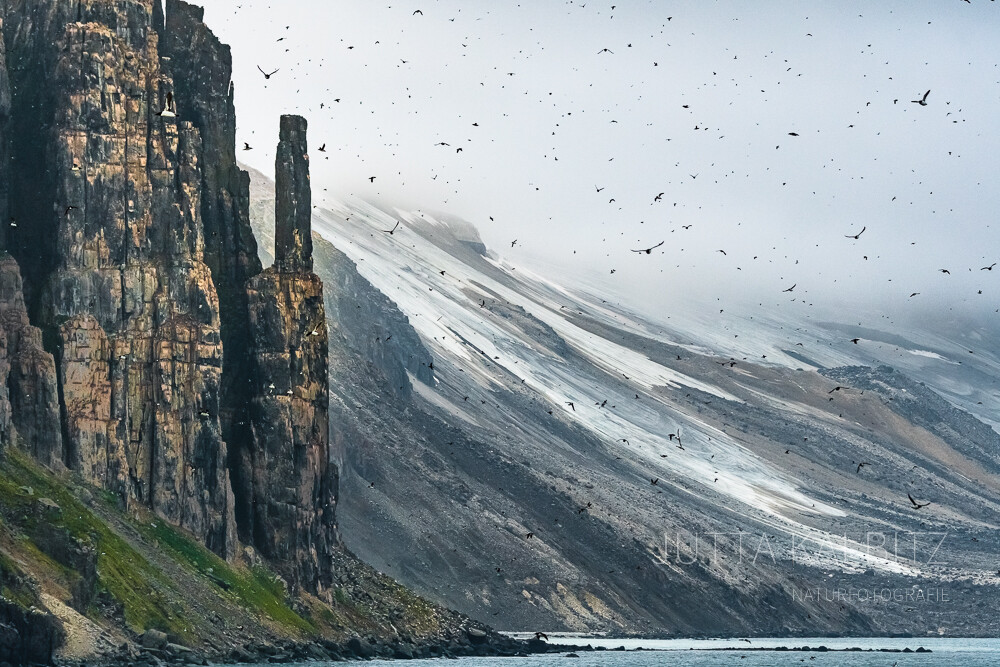 Beginnen wir mit den „Gefiederten“… Bereits das Alkefjellet in der Hinlopenstraße zu Beginn unserer Reise war eine Offenbarung!