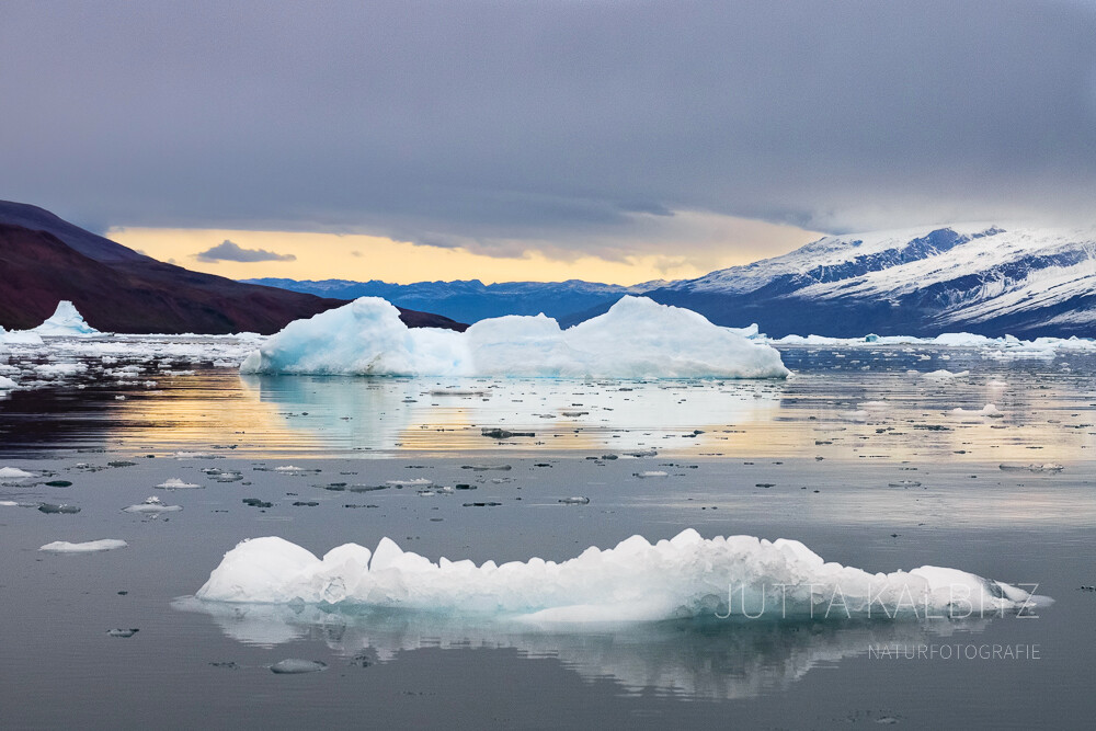 Alpine Gebirge mit wild zerklüfteten Kämmen wachsen bis zu 3000 m unmittelbar aus dem Eismeer, die Gletscher des Inlandeises reichen meist bis an die Küste und die riesigen schwimmenden Eisberge bezaubern, wenn sie im Wechsel von Nebel und Sonne immer neue Stimmungen erzeugen.